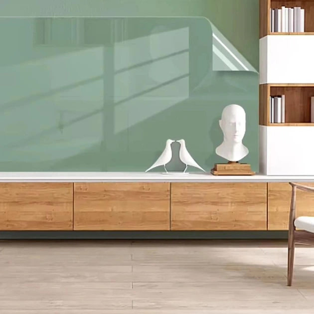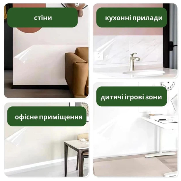 Купила для кухонних фасадів — супер! Плівка прозора, не псує вигляд, жир легко витирається. Наклеїла за 5 хвилин, без клею, без бульбашок. Рекомендую!